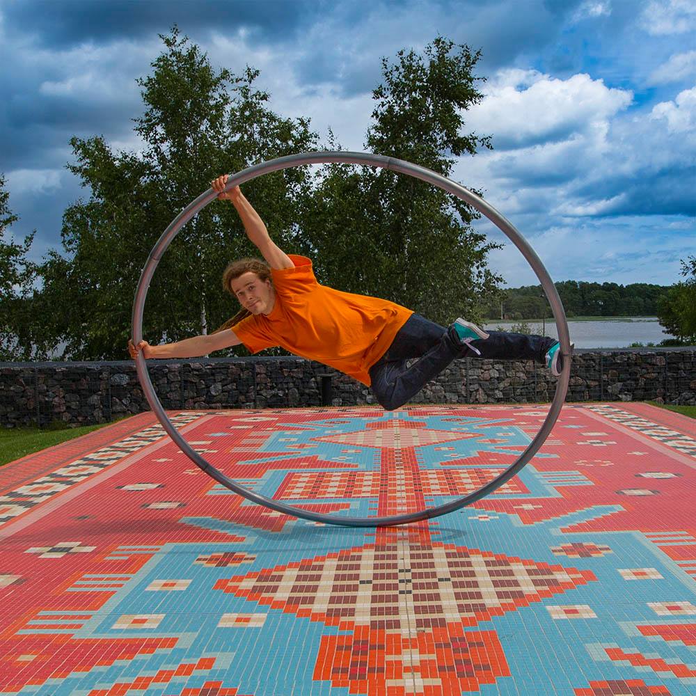 I made this video for my documentation about the ideas I came up with my reseach with cyr wheel. I got an idea, it could be fun to show that work in progress material. Here is what I experimented during three days, whitout judging it. Now I can watch if some of these ideas inspires me, and I would like to develope further, maybe simplifying, maybe taking some details to another context. In the most of cases i was wondering around looking at items, thinking could I use this or that one with cyr wheel. Nevertheless I like the minimalism having just the wheel, bringing extra items was inspiring, bacaus it is so rare seen done with cyr wheel.